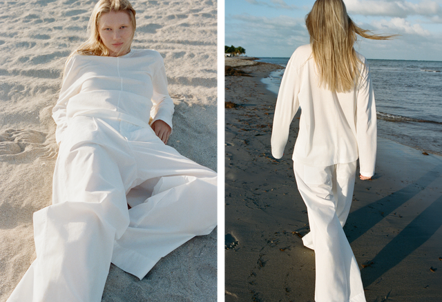 Gaby pleated trousers in waffled organic cotton